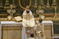 (2) Dans le rite traditionnel, le célébrant ne tourne même pas le dos à l’ostensoir pour les « salutations » au peuple (Dominus vobiscum, etc.), mais il se met de côté.