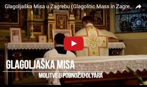 Jeudi 1 septembre, en l’église Saint-Martin de Zagreb. Monsieur l'abbé Markiewicz (en poste à Bordeaux à la direction de l'école st Projet) a célébré une Messe en glagolitique (ou vieux-ecclésiastique-slavon). Depuis plusieurs siècles, dans certains endroits de la Croatie, on célèbre la Messe romaine en langue liturgique slave locale, le glagolitique. Au XXème siècle, le Saint-Siège a étendu la possibilité d’utiliser le missel glagolitique à tout le territoire de l'ancienne Yougoslavie. Une telle Messe n’a pas été célébrée depuis des années et notre cher confrére a été le premier à le refaire. Cette Messe a eu lieu dans le cadre d'une visite chez les fidèles de Zagreb qui desirent avoir un prêtre traditionnel chez eux et qui sont en contact avec Monsieur l’abbé Królikowski. Même s'il s'agissait d'une messe de semaine, il y avait une grande foule à l'église: DEO GRATIAS.